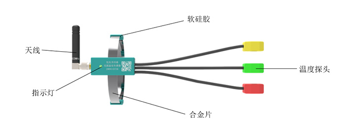 傳感器由傳感器天線、合金片、傳感器主體、溫度探頭四大部分組成。